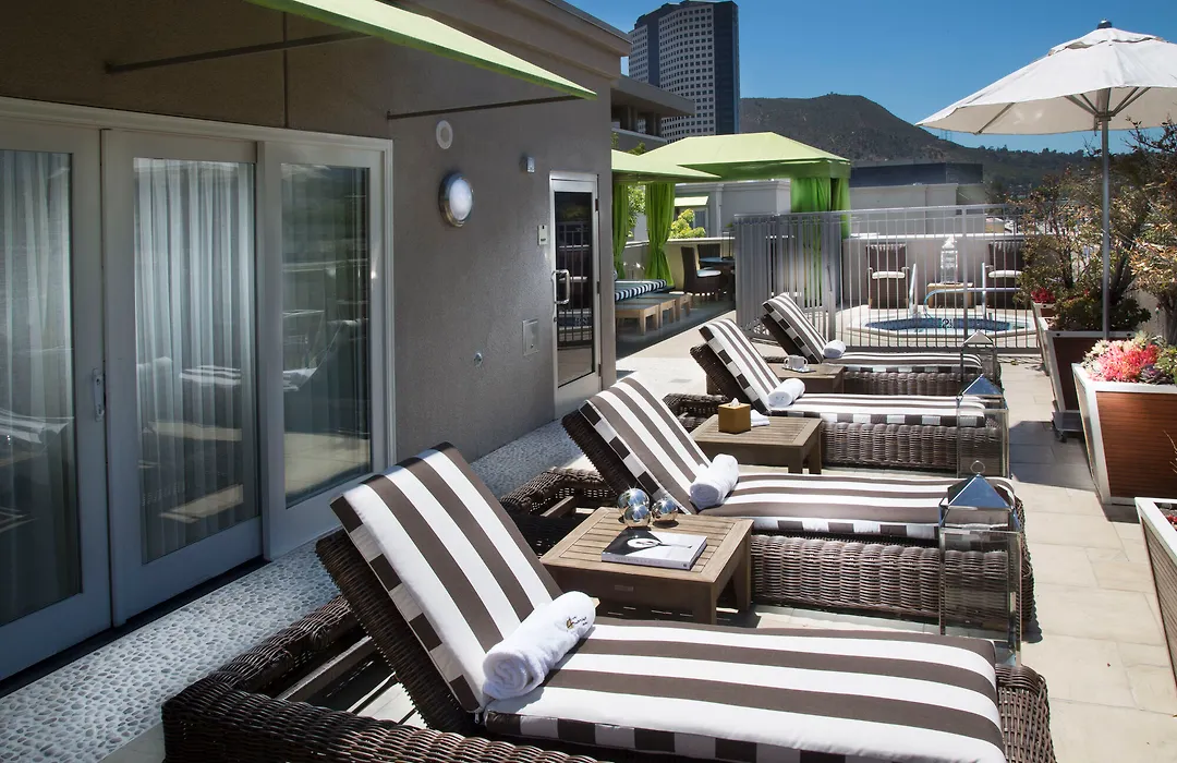 Dining options include the FYC Bar + Kitchen, which serves contemporary California cuisine and craft cocktails in an intimate ambiance. Room service is available daily for breakfast and dinner, ensuring convenience for guests dining in.