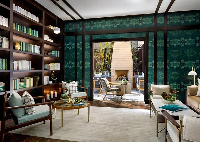 Ambrose Hotel, a 4-star Santa Monica hotel with an 8.6/10 Booking.com rating, offers modern Craftsman-style interiors and eco-friendly amenities. Guests can enjoy complimentary organic Groundwork Coffee in the lobby and access to a fitness center equipped with Peloton bikes.