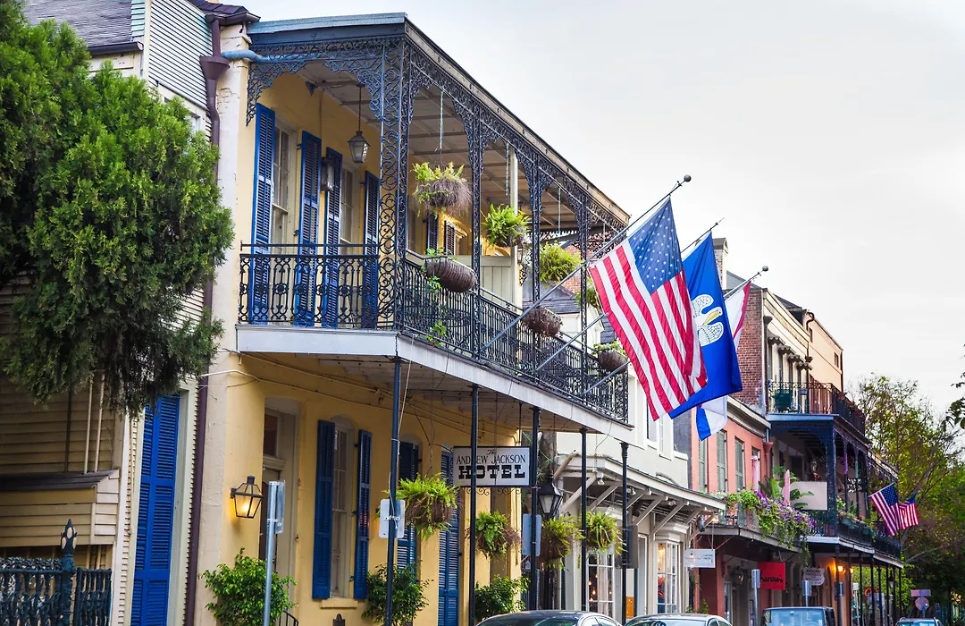 Andrew Jackson Hotel French Quarter offers a pet-friendly townhouse-style experience infused with American history and Creole culture. Located just one block from Bourbon Street, this historic 3-star hotel features charming 18th-century architecture and a tranquil courtyard.