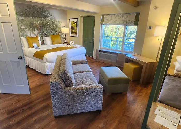 Arbors At Island Landing Hotel & Suites is a 3-star Pigeon Forge hotel offering family-friendly accommodations and riverfront amenities. Guests can enjoy a heated outdoor swimming pool, seasonal hot tub, and complimentary snacks available 24/7. The property features extensive grounds with fishing access and an acre of meadow.