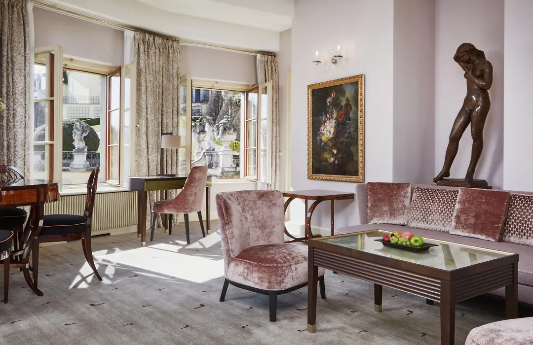 Accommodations at Aria Hotel Prague include a range of elegant rooms and suites inspired by classical, contemporary, opera, and jazz music, showcasing original artworks and providing state-of-the-art in-room technology like Apple TV and iPads. The Junior Suite King offers views of either the Vrtba Garden or Winter Garden Atrium, while the American Rock Suite features a living room and a powerful surround sound audio system.