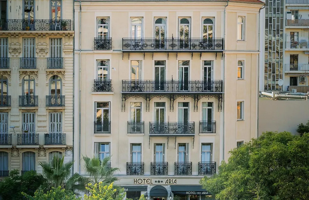 Hotel Aria, a charming 3-star hotel rated 8.5/10 on Booking.com, is situated in Nice's Carré d'Or district, just 2461 ft from the beach. This hotel features modern amenities alongside historic elegance, including a welcoming lobby and a daily continental breakfast.
