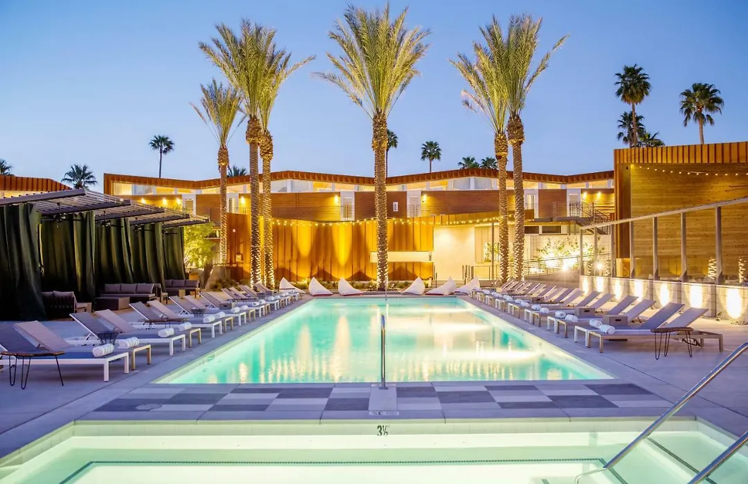 Arrive Palm Springs - Adults Only, rated 8.7/10 on Booking.com, is a design-driven 4-star Palm Springs hotel catering exclusively to adults. The property features a main restaurant, Reservoir, along with a large hot tub and a pool that includes table service for food and drinks. Notable amenities include an on-site coffee shop and artisanal ice cream shop.