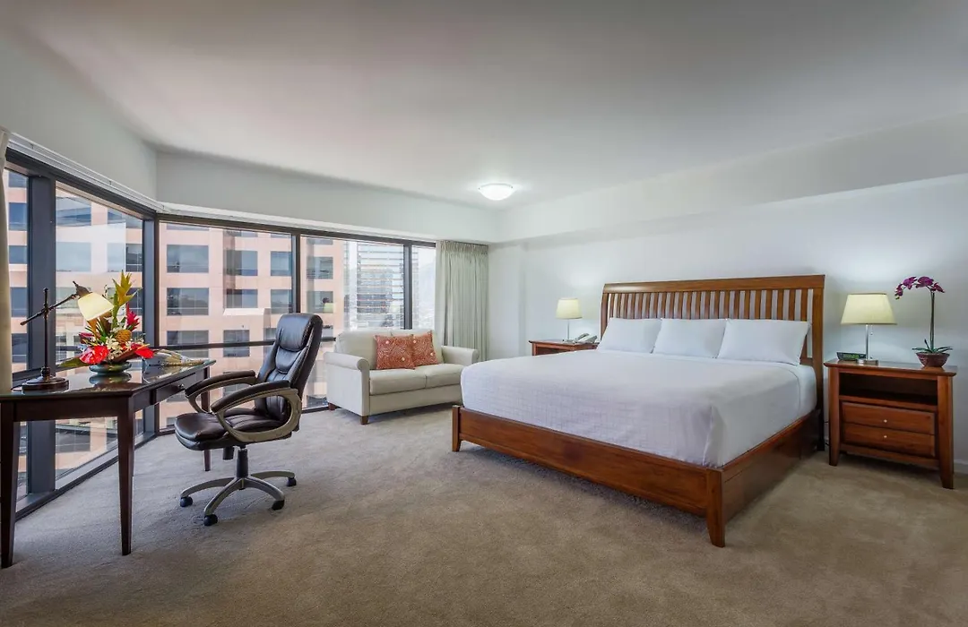 This all-suite hotel is in Honolulu's financial district, ensuring easy access to government offices and major landmarks like the Iolani Palace and Honolulu Museum of Art. Public transportation options include a nearby bus station and the Honolulu Cruise Ship Port.