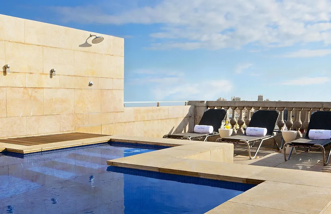 The rooftop terrace and small blue-tiled pool are exclusively for guests, providing a space to enjoy Barcelona's sunsets. For leisure activities, Hotel Astoria boasts a fitness center equipped with exercise machines and a sauna. The nearby area offers numerous shops, restaurants, and bars.