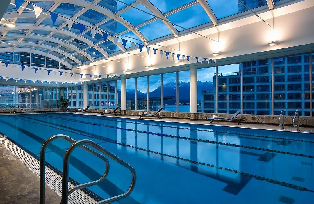 Auberge Vancouver Hotel features a 25-meter indoor pool, squash courts, and a state-of-the-art fitness center accessible via key card. Guests can enjoy relaxing at the whirlpool or rejuvenate with spa services in-house. The hotel is a short walk from Stanley Park, where outdoor activities such as cycling and hiking await.