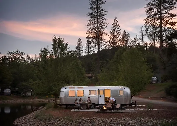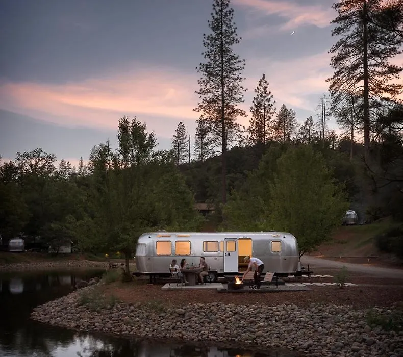 AutoCamp Yosemite offers unique accommodations like iconic Airstream Suites and canvas tents, making it a 3-star Midpines hotel rated 8.8/10 on Booking.com. Guests can enjoy outdoor fire pits, a fully-stocked General Store, and on-site yoga classes. The property is situated adjacent to Yosemite National Park, providing easy access to outdoor adventures.