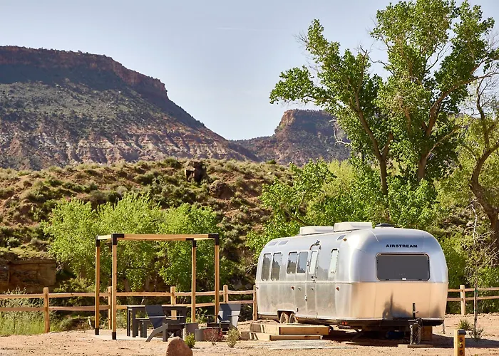 Autocamp Zion, a 4-star hotel, offers unique accommodations set amidst stunning natural scenery. Guests can enjoy on-site amenities including a pool, clubhouse, and a General Store with local snacks and provisions.