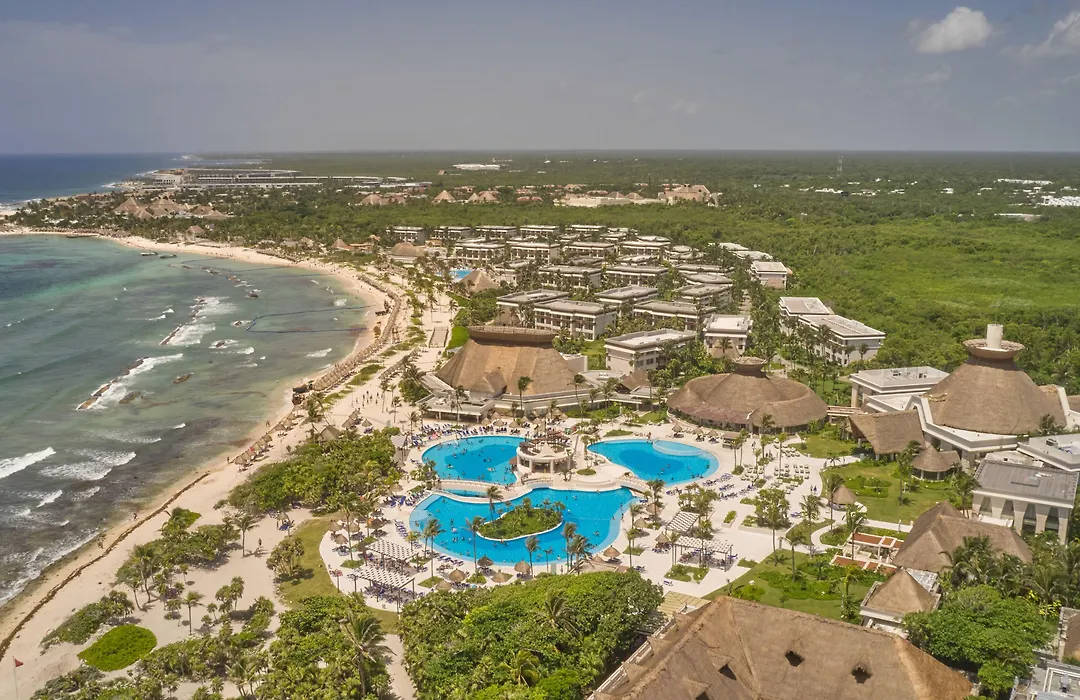 Bahia Principe Grand Tulum, a 5-star resort with an 8.0/10 rating on Booking.com, features spacious rooms and a unique selection of amenities. Guests can enjoy a beachfront location, pools, a spa, and an on-site water park. This family-friendly hotel offers gourmet dining options and activities for all ages.