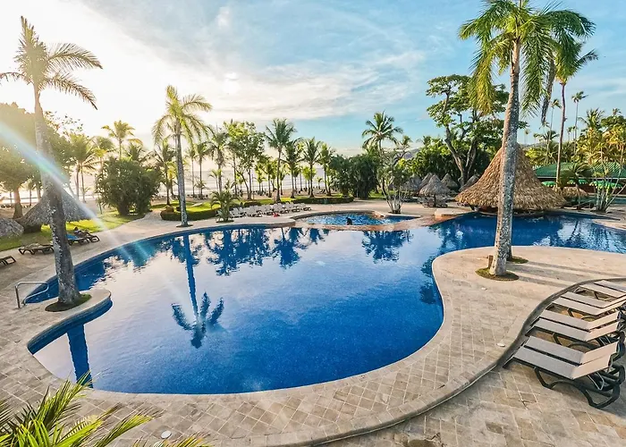 Barceló Tambor is a 5-star family-friendly hotel featuring a stunning location facing a beautiful beach along the Pacific Ocean. The hotel offers All-Inclusive services and a wide array of amenities, including multiple swimming pools and dining options. Guests can enjoy various activities designed for all ages, including water sports and entertainment programs.
