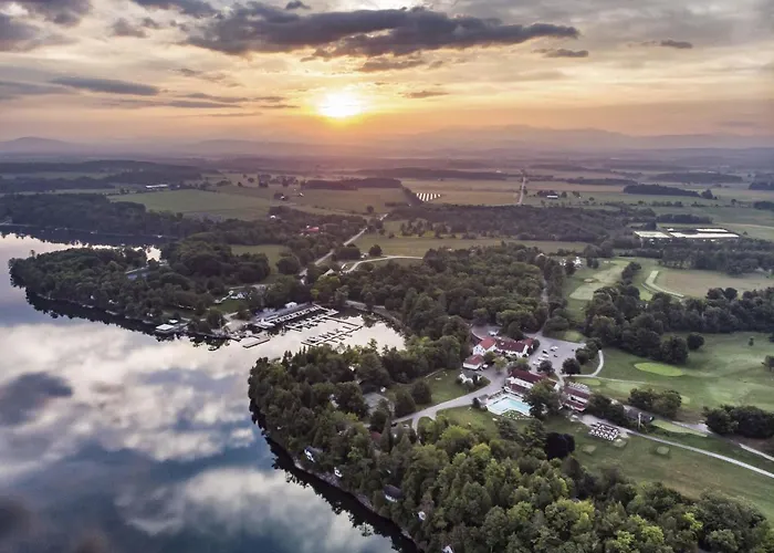 Basin Harbor, a 3-star resort rated 8.1/10 on Booking.com, features unique accommodations such as lakeside cottages and spacious guest rooms with modern comforts. The resort offers a variety of activities including tennis, kayaking, and golfing at The Golf Club, alongside fine dining options like Ardelia's.