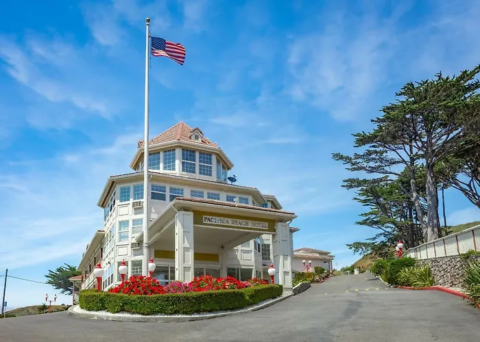 Pacifica Beach Hotel, a 3-star establishment rated 7.6/10 on Booking.com, offers beachfront accommodations with easy access to Pacifica State Beach. The hotel features an indoor pool with ocean views, jacuzzi tubs in many rooms, and a Peruvian restaurant, Puerto 27.