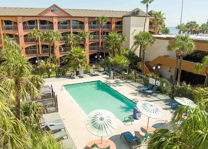 Beachfront Palms Hotel Galveston is near local attractions including the Galveston Island Historic Pleasure Pier and Moody Gardens Palm Beach, both within a short drive. Public transport options include nearby bus stops at 61st & Seawall and 57th & Seawall, providing easy access to the surrounding areas.