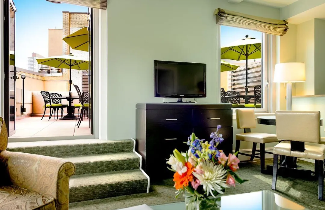 Spacious studios and suites at Hotel Beacon are equipped with fully-equipped kitchenettes and marble bathrooms, providing essential comforts for longer stays. ADA-compliant rooms are available, ensuring accessibility for all guests.