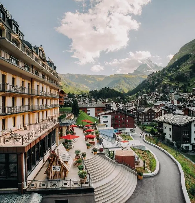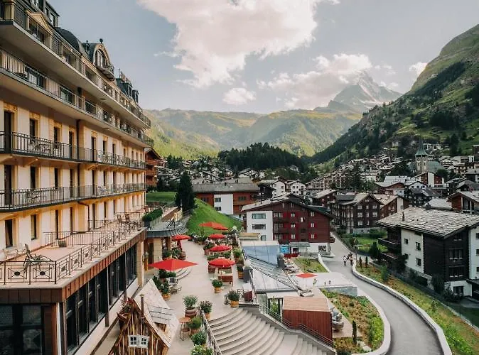 Beausite Zermatt is a 4-star hotel with a 9.5/10 rating on Booking.com, known for its modern amenities and refined British style. This Zermatt hotel features a new spa, outdoor infinity pool, and vibrant interiors, situated conveniently for exploration.