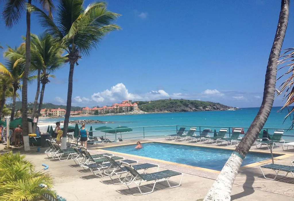 Dining options feature the Gingerbread Cafe located directly on the beach, offering breakfast, lunch, and dinner. Guests can enjoy various menu specials, including barbecue nights and lobster nights. The cafe's open-air setting provides beautiful views of Little Bay Beach and cruise ships.