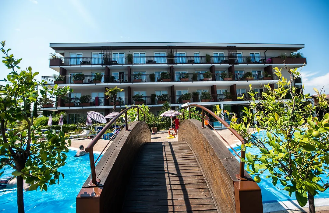 Hotel Bella Italia, a 4-star Peschiera del Garda hotel with a rating of 7.7/10 on Booking.com, offers a modern stay within Camping Bella Italia. Guests have access to various facilities including a swimming pool, indoor pool, several playgrounds, and a buffet breakfast bar.