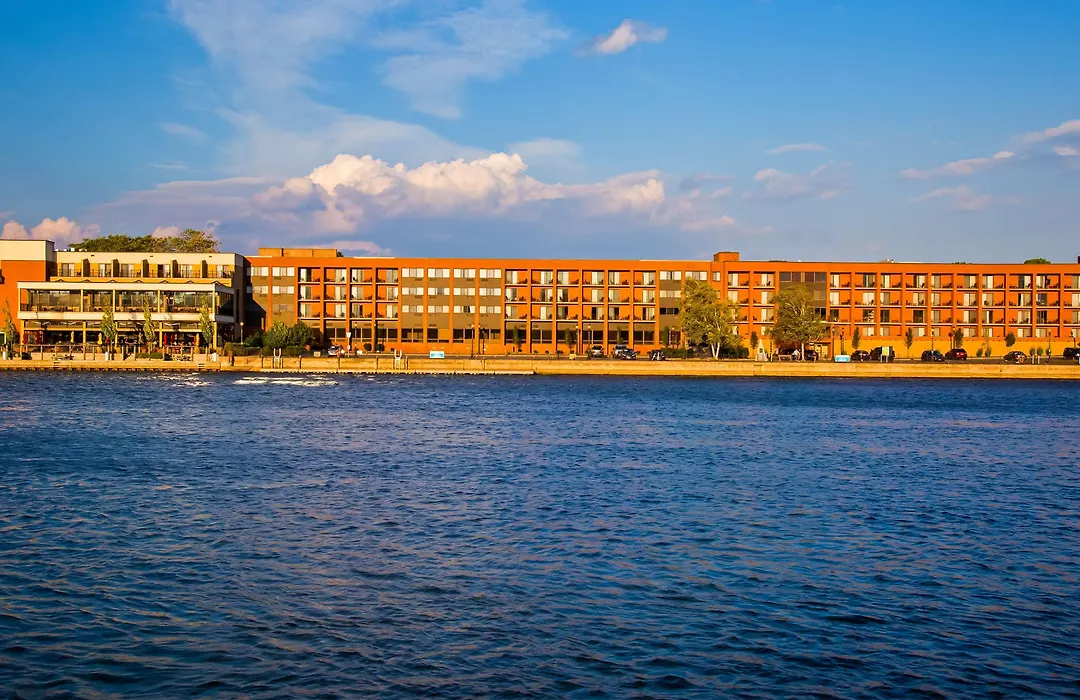 Dining options feature the onsite restaurant, Alex, which serves American cuisine and offers both indoor and outdoor seating on the river. Guests can enjoy a complimentary breakfast and a range of nearby dining options within walking distance.