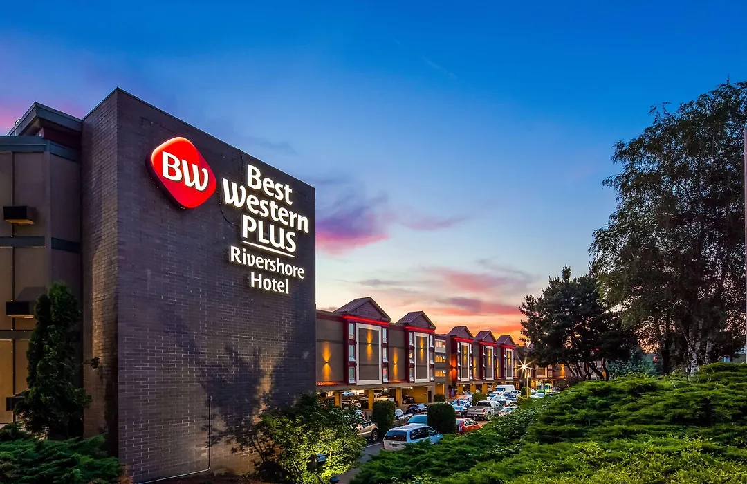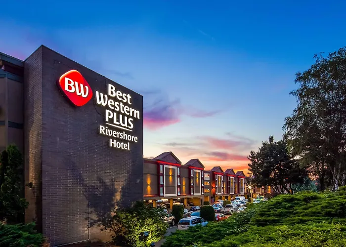 Best Western Plus Rivershore Hotel is a 4-star Oregon City hotel located along the Willamette River, offering a heated outdoor pool and a hot tub. The hotel features business facilities, dining at Rivershore Bar & Grill, and complimentary Wi-Fi throughout the property.