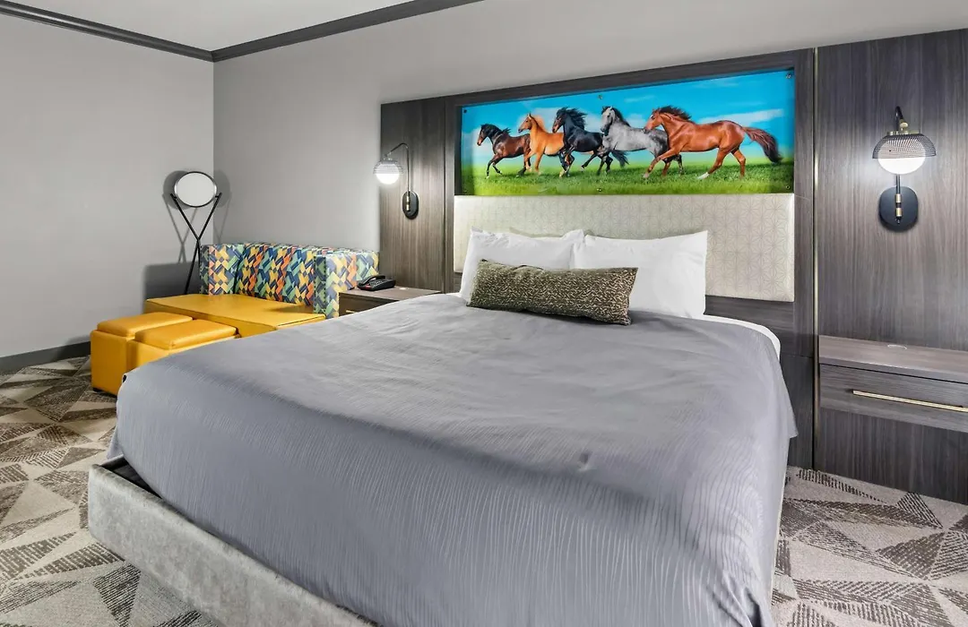 Guestrooms at Big Country Hotel & Suites are equipped with essentials such as free WiFi, air conditioning, flat-screen cable TVs, microwaves, and refrigerators. The rooms are decorated with dark wood furnishings and rich colors, providing a comfortable ambiance for travelers.