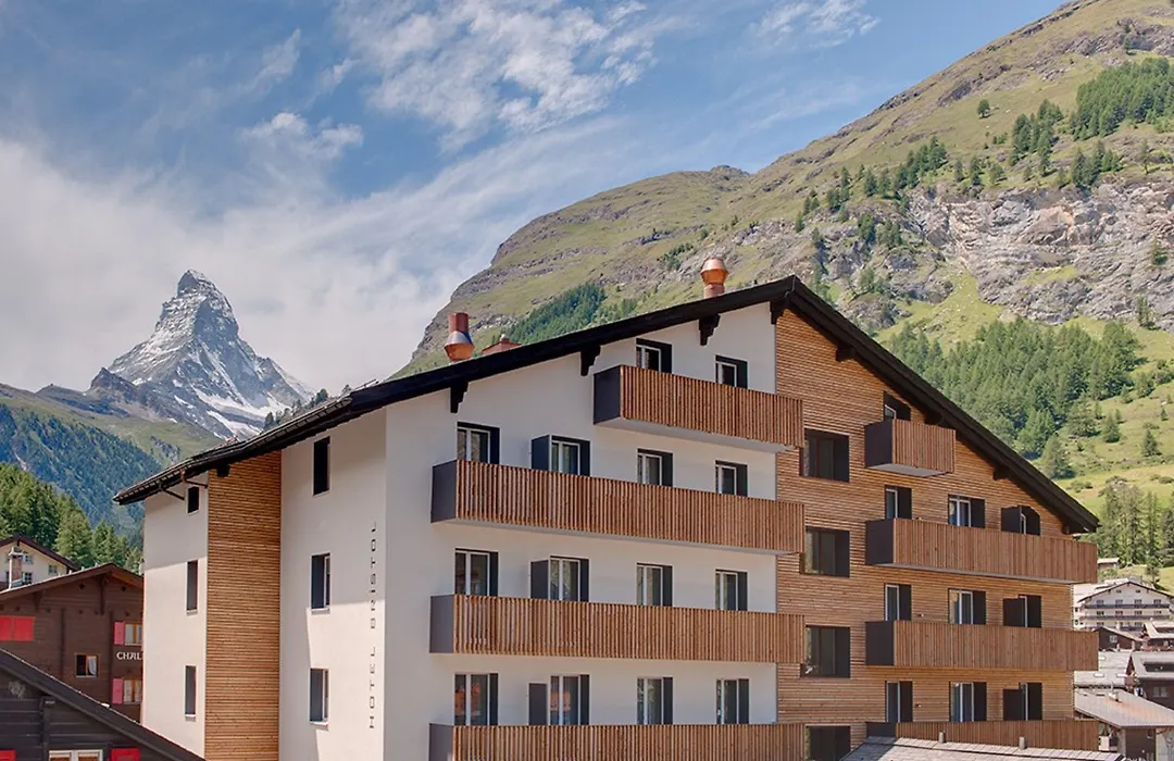 Hotel Bristol in Zermatt, a family-run 3-star hotel with a 9.3/10 rating on Booking.com, offers a range of amenities including a spa area, free WiFi, and easy access to ski lifts. Its picturesque surroundings provide guests with stunning views of the Matterhorn.