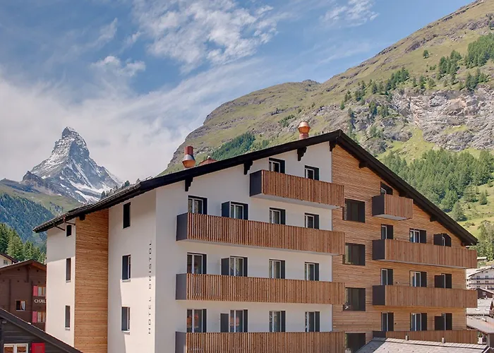 Hotel Bristol features a variety of room options, including Deluxe Double Rooms, Triple Rooms, and apartments, all designed with wooden floors and modern décor. Many accommodations provide balconies with views of the Matterhorn or Mischabel Mountain Range.