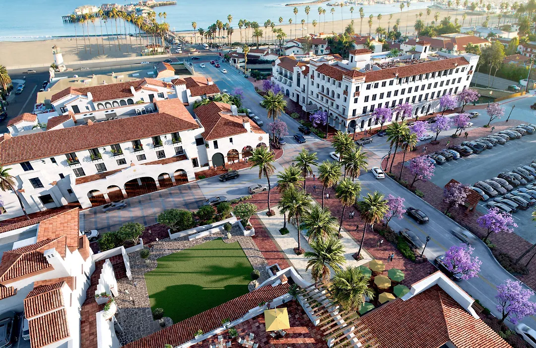 For business and events, the hotel features a 2850 square foot ballroom, five meeting rooms with private patios, and a 4500 square foot plaza for outdoor functions. Hotel Californian's prime location offers easy access to local attractions, including the Santa Barbara County Courthouse and iconic Stearns Wharf. Valet parking and complimentary bicycle rentals are available for guests.