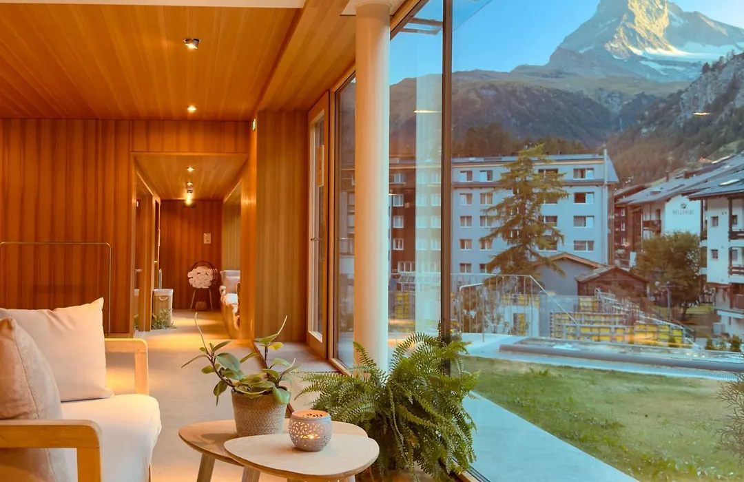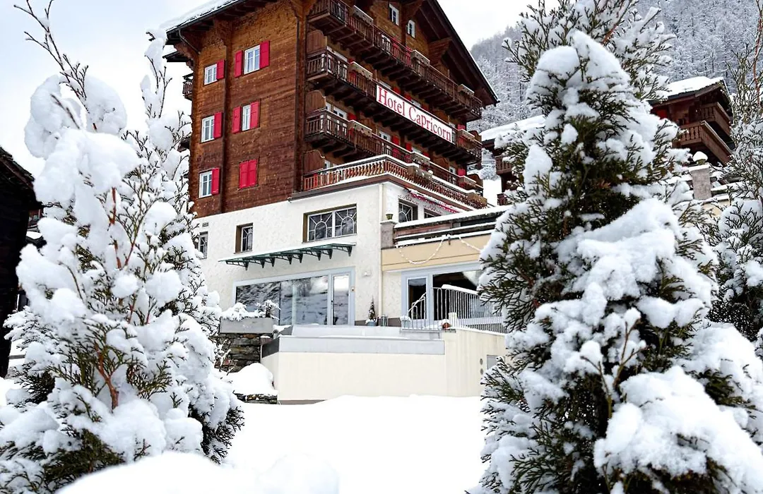 Hotel Capricorn, a 3-star Zermatt hotel with a rating of 9.1/10 on Booking.com, features a delicious breakfast and stunning views of the Matterhorn. The establishment offers a wellness area with sauna, steam bath, outdoor whirlpool, and relaxation lounge.
