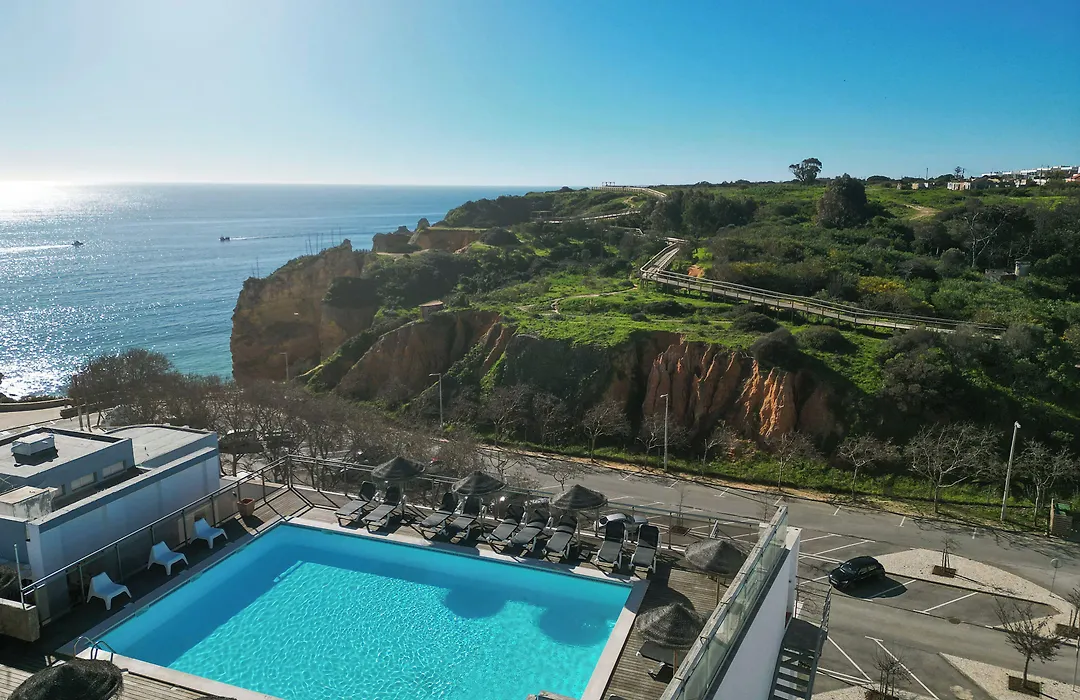 The hotel offers leisure facilities including an outdoor swimming pool and is conveniently located near D. Ana Beach, just 722 ft away. Transportation options include a local bus stop 2 minutes from the property, providing easy access to the historic center of Lagos and other nearby beaches.
