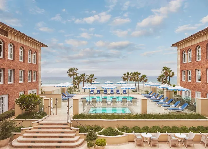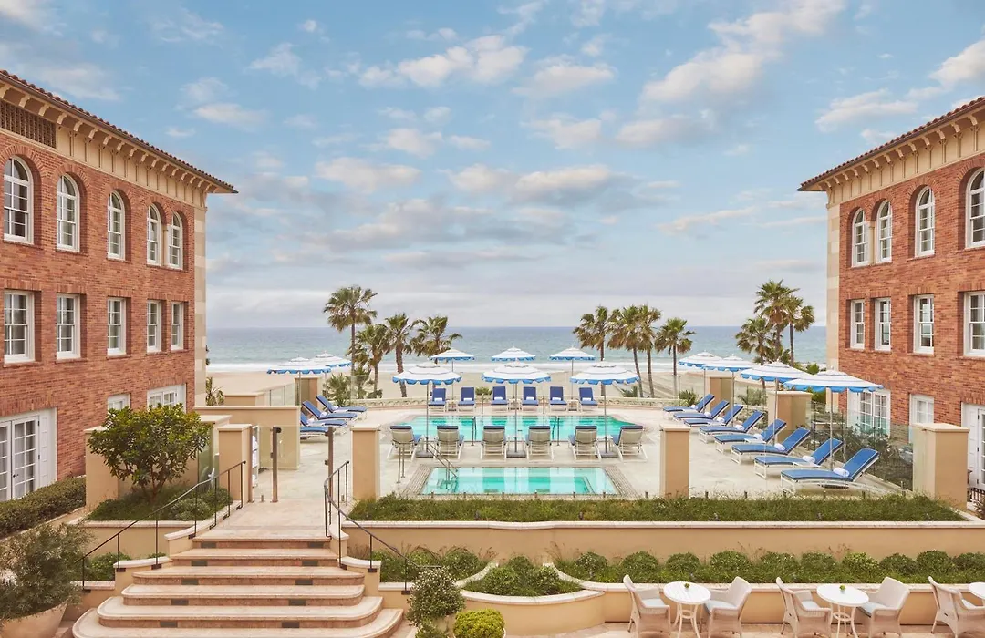Casa Del Mar, a luxury beachfront hotel with a 9.2/10 Booking.com rating, features dramatic ocean views and Mediterranean-inspired design. Its on-site amenities include Sea Wellness Spa, a pool area overlooking the Pacific, and diverse dining options like Terrazza Restaurant.