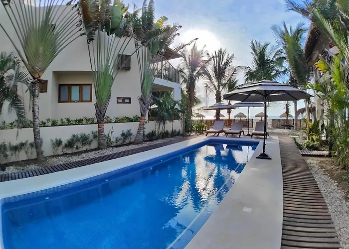 Casa Kuaa features a 3-star rating with an 8.7/10 score on Booking.com, offering amenities such as an outdoor swimming pool, a garden, and a private beach area. This Brisas de Zicatela hotel provides air-conditioned accommodations with a terrace.
