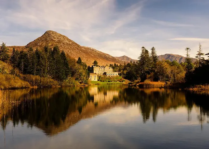 Ballynahinch Castle Hotel, rated 9.8 on Booking.com, is a 4-star hotel set within a 700-acre estate. This castle hotel offers extensive open log fires, an array of outdoor activities, and a focus on local cuisine. Guests can enjoy the award-winning Owenmore Restaurant and Fisherman's Pub while taking in the scenic views of the Twelve Bens Mountain range.