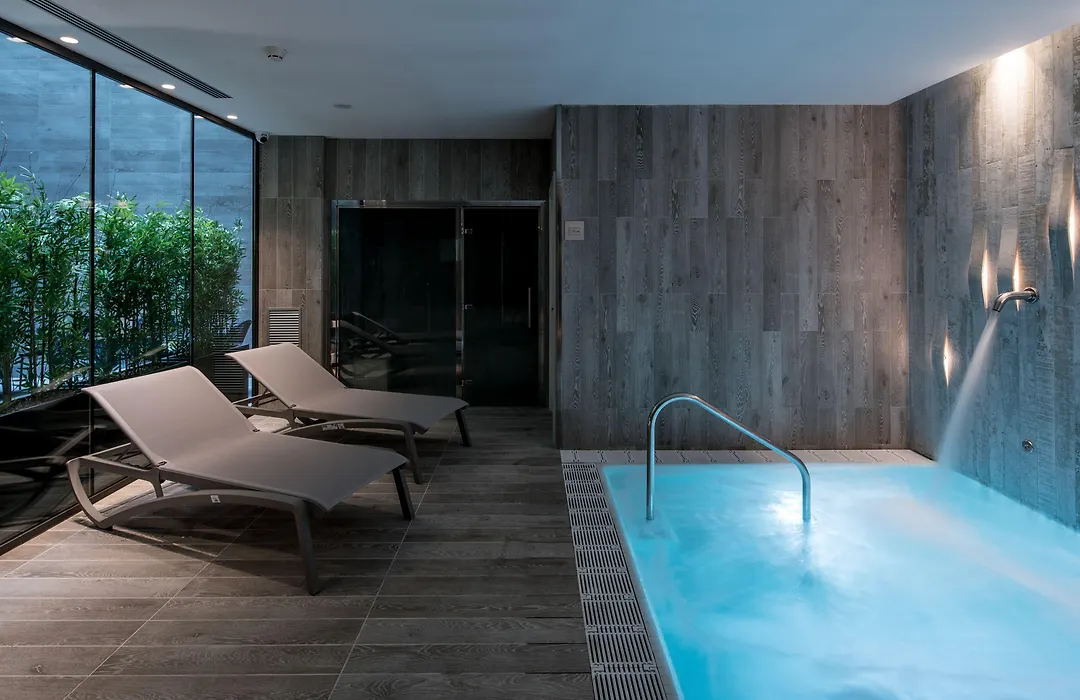 The hotel offers leisure facilities including a rooftop terrace with a glass-enclosed pool, sun deck, and snack bar, along with access to a small basement spa with a heated relaxation pool and steam bath. Guests can unwind in the spa or take advantage of fitness amenities such as a compact gym. Catalonia Magdalenes also features a concierge service for personalized assistance.