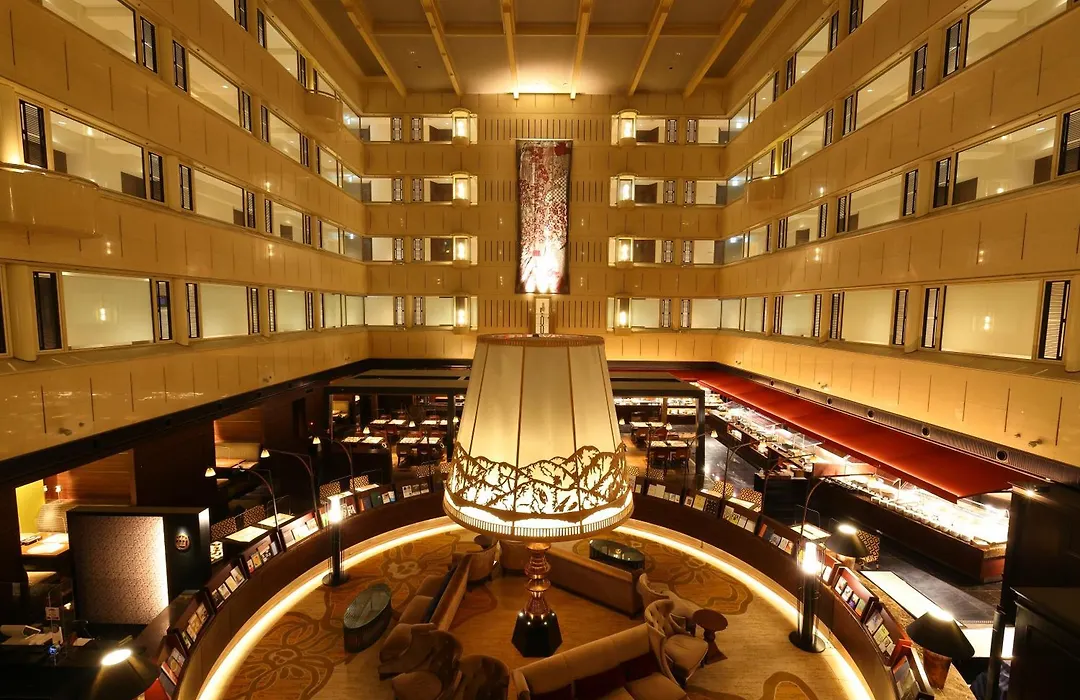 Dining options include the Bonheur teppanyaki grill, where food is cooked at the table, and La Jyho, which serves both Japanese and Western-style buffet breakfast and meals. Additionally, a patisserie offers colorful desserts for guests to enjoy throughout the day.