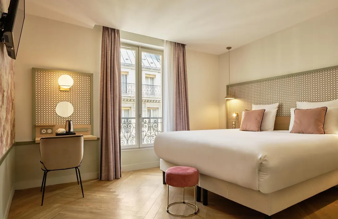 Hotel Cervantes by Happyculture is a 3-star Paris hotel located in a peaceful area of the Haussmann district. The property features modern amenities and a terrace for relaxation. Guests can enjoy complimentary cocktails and savory snacks in the evening, along with access to Happy Services.