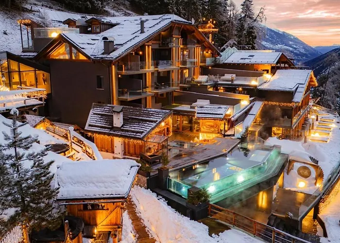 Hotel Chalet Al Foss - Adults Only offers a blend of modern design and mountain style, catering exclusively to adults. This 5-star Vermiglio hotel is known for its wellness center, infinity pool, and panoramic Finnish sauna.