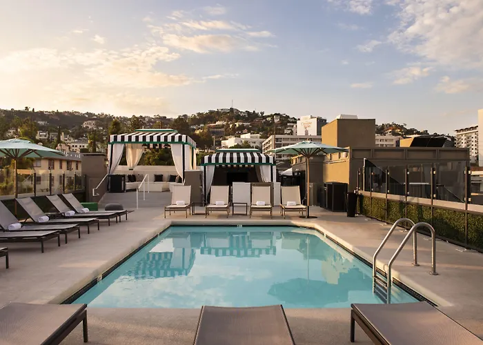 Chamberlain West Hollywood, a 5-star hotel rated 8.6/10 on Booking.com, features newly remodeled suites and a rooftop terrace with breathtaking views. This West Hollywood hotel offers a modern design with top amenities including a restaurant serving New American cuisine and a heated pool.