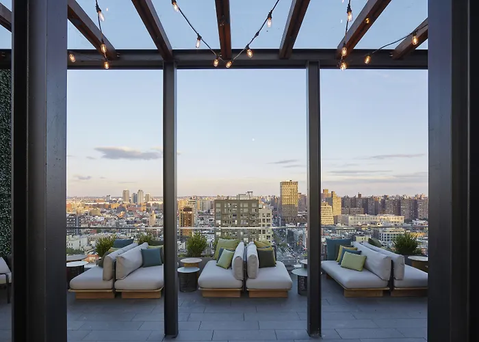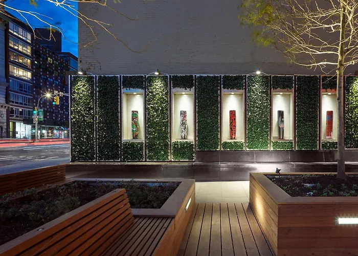 Citizenm New York Bowery offers affordable luxury in a vibrant setting, featuring contemporary design complemented by creative wall art. This 4-star New York hotel provides modern amenities such as a rooftop bar, fitness center, and a 24-hour self-check-in.