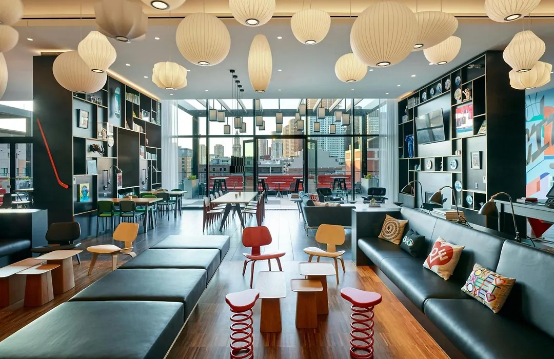 Citizenm offers a 24-hour fitness center and inviting lounge areas with books and vibrant artwork. Guests can connect their devices to the room TV via Chromecast.