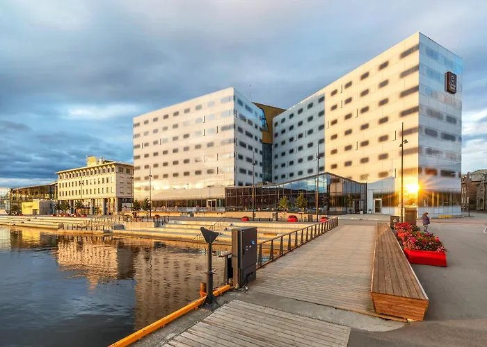 Clarion Hotel Trondheim is a modern 4-star hotel featuring 400 rooms and 18 meeting spaces, located in a vibrant district. Guests can enjoy amenities such as free Wi-Fi, a rooftop restaurant with panoramic views, and easy access to Pirbadet Waterpark.