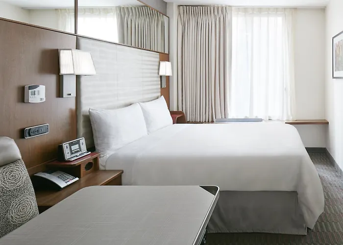 Club Quarters Hotel Grand Central, New York, a 4-star establishment rated 8.5/10 on Booking.com, offers modern accommodations in Midtown. The hotel features a fitness center, complimentary WiFi, and a shared lounge area.
