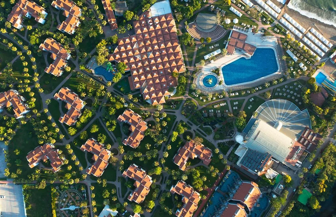 Guests can enjoy amenities like a private beach, several pools including an adult-only pool, and sports activities such as basketball, tennis, and windsurfing. The on-site spa offers massages and traditional Turkish bath services.