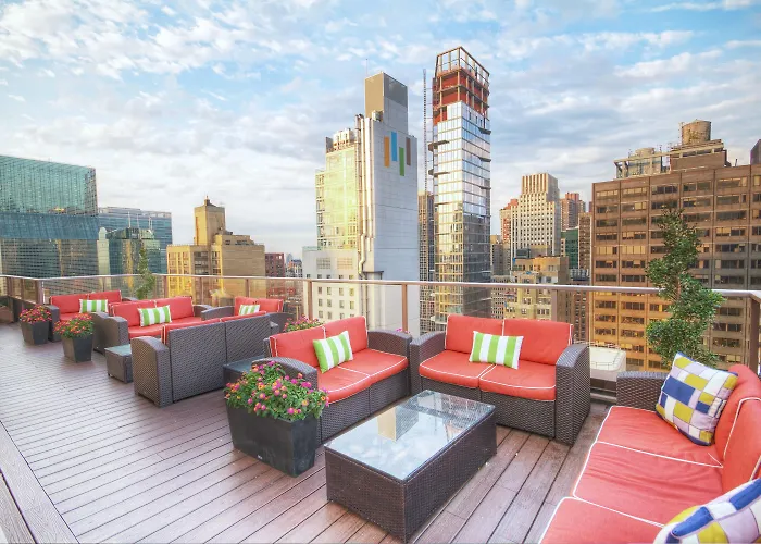 Club Wyndham Midtown 45, a 4-star New York hotel with an 8.4/10 rating on Booking.com, offers stylish accommodations and a range of amenities including valet parking, a 33rd-floor sky lounge, and a fitness center. The property features both air-conditioned rooms and suites equipped with full gourmet kitchens.