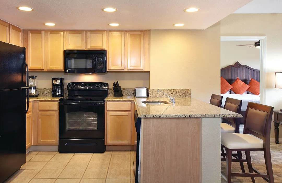 Rooms at Club Wyndham Palm-Aire feature upscale style and modern amenities, including air conditioning, premium bedding, and balconies or patios with garden or golf views. Options range from spacious studios to one and two-bedroom suites, each equipped with full kitchens and some with whirlpool tubs.