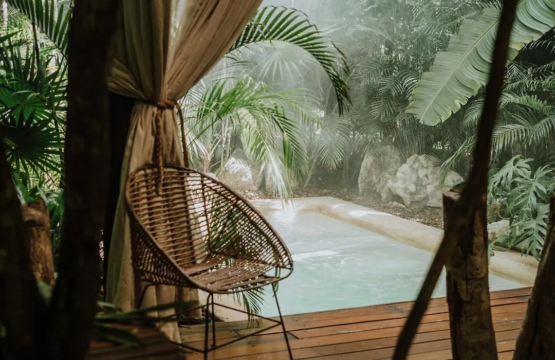 Nestled in the heart of Tulum's lush jungle, Copal Tulum Hotel features a 5-star setting centered on sustainability and luxury. This hotel boasts an outdoor swimming pool, a fitness center, and a garden, along with unique wellness services and curated local experiences. Rated 8.4/10 on Booking.com, it offers a serene retreat for travelers.