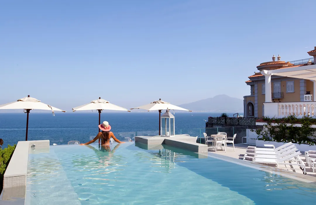 Hotel Corallo Sorrento, a 4-star Sant'Agnello hotel, features a heated infinity pool and large sun terraces offering views of the Bay of Naples. The hotel provides amenities such as 24-hour reception, direct beach access, and private parking with video surveillance.