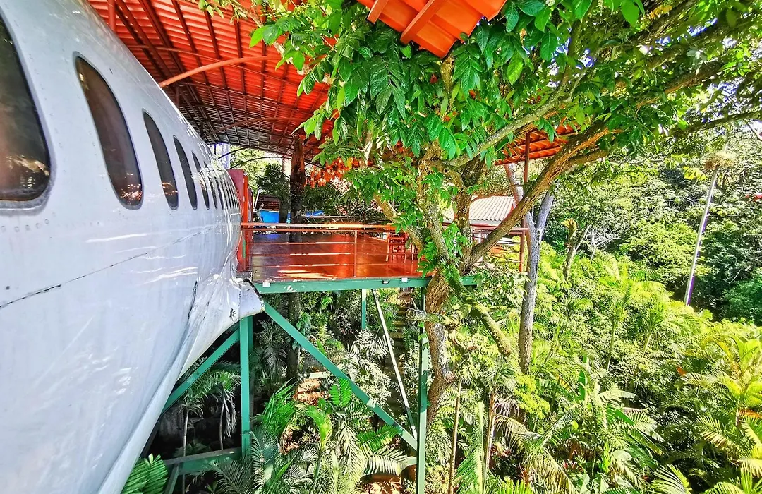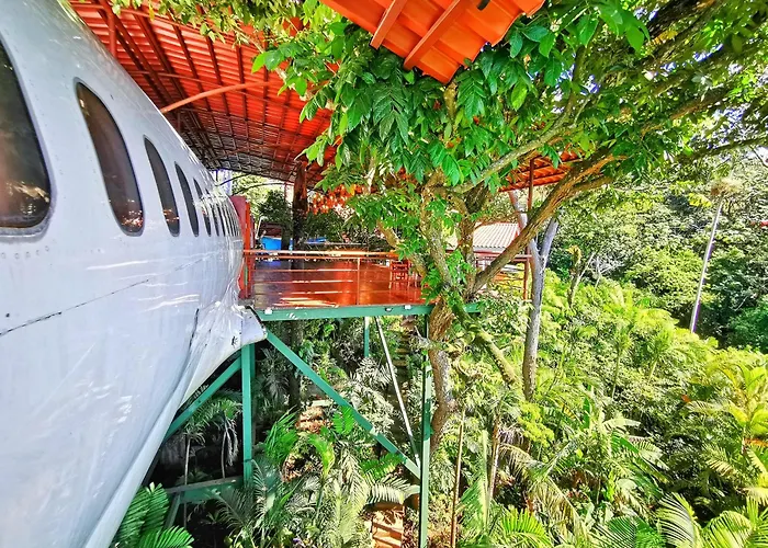Hotel Costa Verde, a 4-star Manuel Antonio hotel rated 8.6/10 on Booking.com, offers unique accommodations in refurbished aircraft, including a 727 fuselage suite and a vintage MD-82 jet. Notable amenities include three swimming pools, on-site dining options, and direct access to rich wildlife and nature experiences.