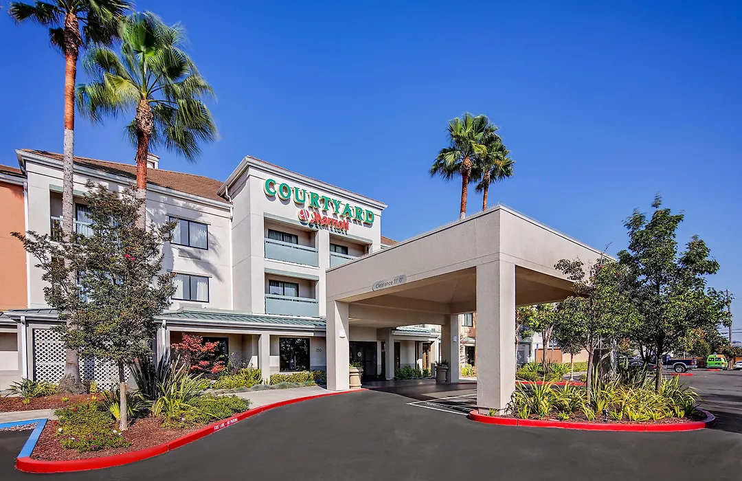Courtyard By Marriott Oakland Airport is a 3-star hotel offering a variety of amenities including an outdoor pool and fitness center. Guests can enjoy dining at The Bistro, which features Starbucks coffee and a selection of breakfast and dinner options. The hotel provides complimentary shuttle service to Oakland International Airport, located just 3.1 miles away.