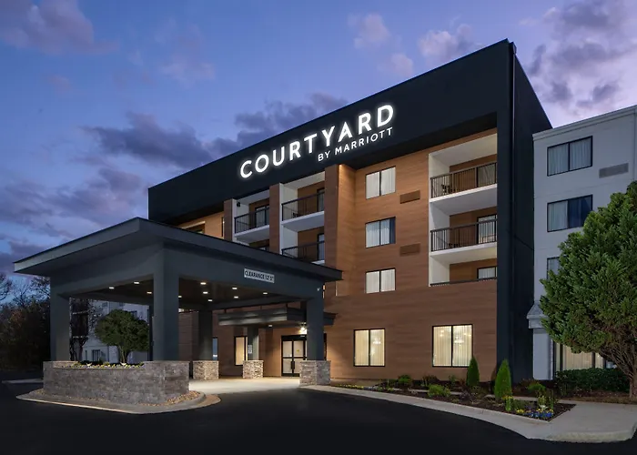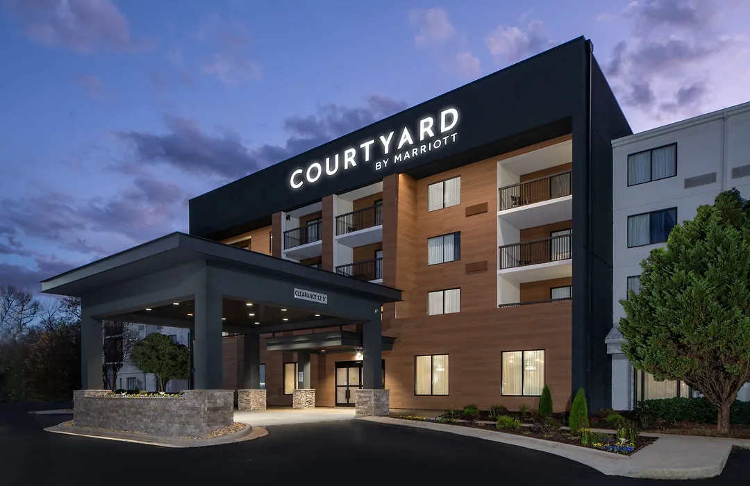Leisure facilities include an indoor pool, hot tub, and fitness center, allowing guests access to various recreational activities. The Courtyard features a cozy lobby fireplace for relaxation.