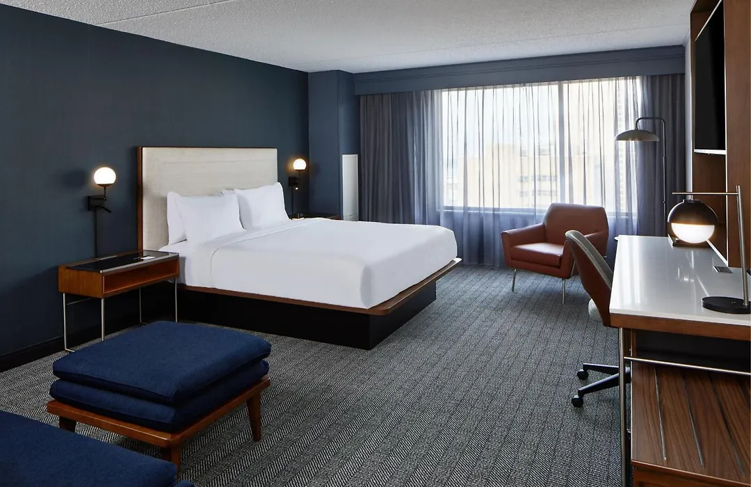 Courtyard By Marriott Detroit Downtown, a 3-star hotel, offers spacious accommodations with ergonomic workspaces and refreshing views across the Detroit River. Guests can enjoy dining options at the on-site IHOP and Applebee's, as well as access to a fitness center and an indoor pool.